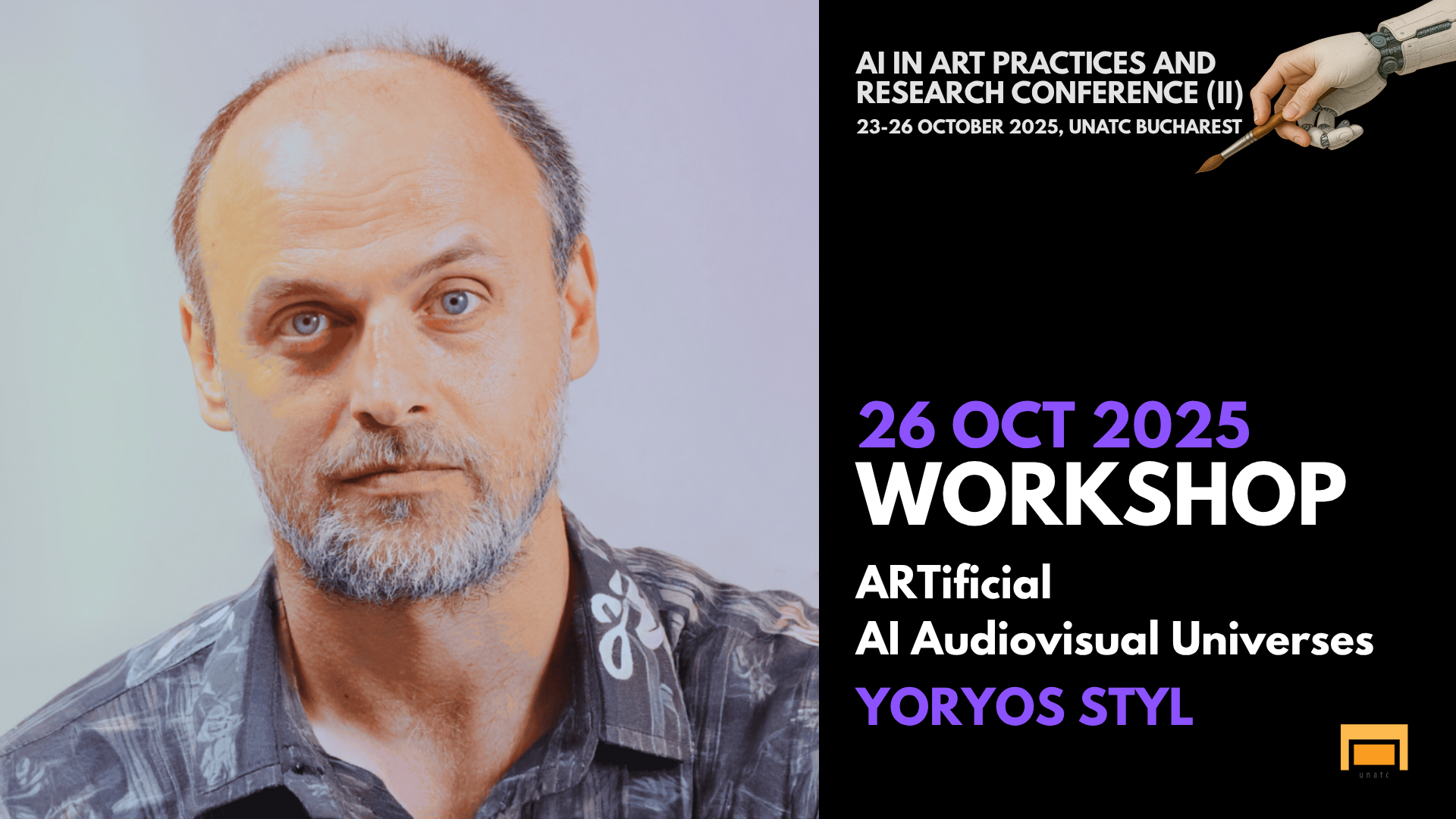 The workshop is part of the the second edition of the AI in Art Practices and Research international conference, organized by UNATC in Bucharest from 23–26 October 2025. The event explores the impact of AI on artistic creation and research, as well as its broader applications in society, such as accessibility, healthcare and well-being.